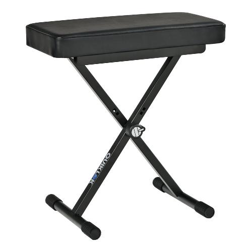 Piccola panca, ideale per piano o tastiera, con un comodo cuscino, alto e imbottito. La struttura in acciaio è robusta, richiudibile e regolabile in altezza a tre posizioni.