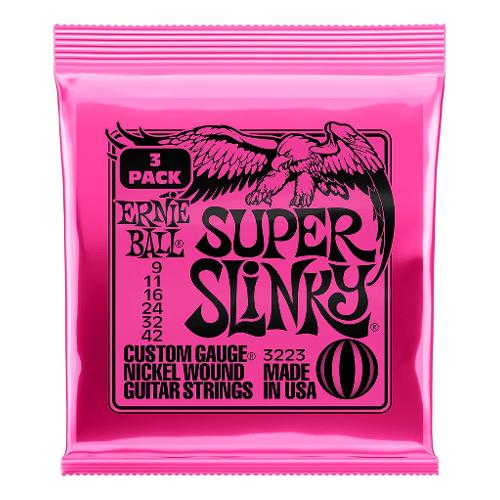 Oggi disponibili nella conveniente confezione da tre mute, le corde per chitarra elettrica Ernie Ball Super Slinky vengono suonate da Jimmy Page, Jeff Beck, e Angus Young. Queste corde sono realizzate rispettando gli standard più elevati e le specifiche più stringenti per garantire una qualità costante, prestazioni ottimali e la massima longevità. Le corde avvolte Super Slinky vengono costruite con un filo in acciaio nichelato, avvolto attorno ad un'anima esagonale in acciaio. Le corde lisce sono costruite in acciaio temprato ad elevato contenuto di carbonio placcate allo stagno, e producono un suono ben bilanciato per la vostra chitarra. Diametri: 009, 011, 016, 024w, 032, 042