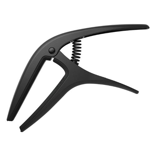 Le caratteristiche ergonomiche dell'Axis Capo Ernie Ball permettono cambi di posizione rapidi e precisi con una sola mano. Un design a doppio raggio si adatta a tastiere piatte o curve, garantendo un funzionamento privo di ronzio su chitarre elettriche e acustiche a 6 o 7 corde.