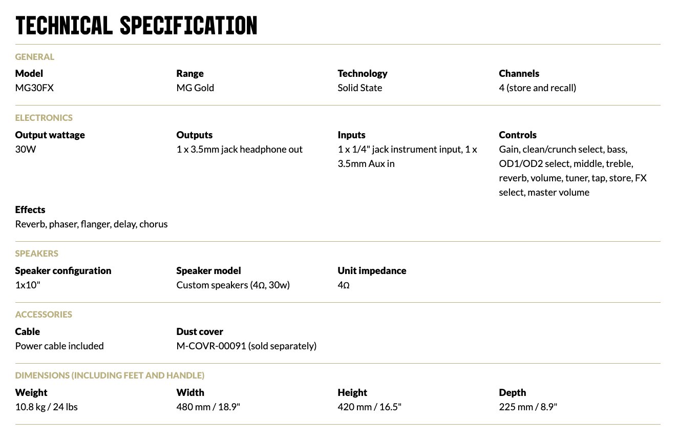 Non lasciarti ingannare dalla loro semplicità, la serie di amplificatori MG offre una gamma di toni classici e moderni, con tutte le caratteristiche di cui hai bisogno da un amplificatore per esercitazioni e molto altro ancora. Tutti gli amplificatori di questa gamma sono dotati di un'uscita cuffia emulata per rendere la pratica silenziosa più facile che mai. Sia che ti stia esercitando in un garage o che ti esibisca sul palco, questi amplificatori avranno sicuramente un bell'aspetto con le loro tubazioni dorate e la finitura in metallo dorato.