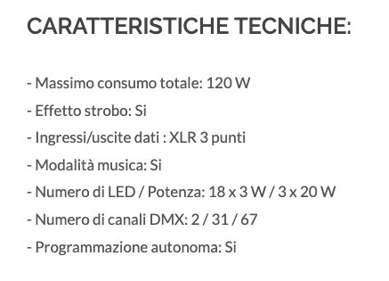 Funzionamento sequenziale, a tempo di musica o dmx