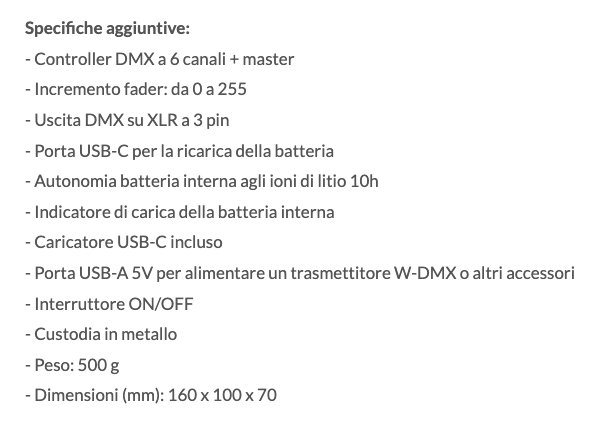 Compatto, semplice e pratico, questo controller DMX a 6 canali alimentato a batteria darà libero sfogo alle tue idee di illuminazione.