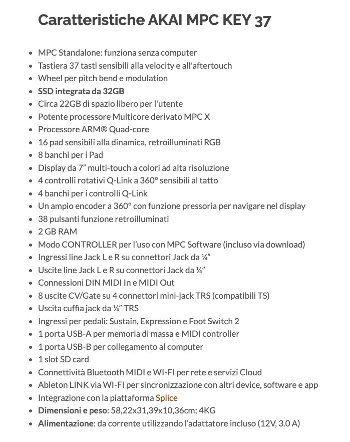 Dai vita alla tua creazione musicale più potente e capace di sempre con MPC Key 37, il potente sintetizzatore desktop MPC autonomo con campionamento integrato, strumenti plug-in, effetti in insert, integrazione Splice e altro ancora. Trasforma il tuo spazio in studio e circondati di musica da ogni lato con MPC Key 37.