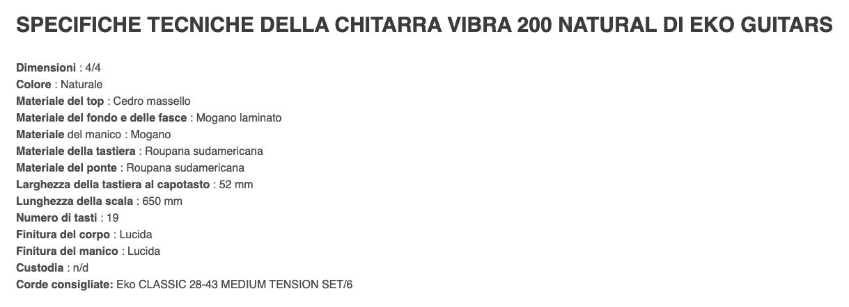 La Vibra 200 Natural è la chitarra classica della serie "Vibra" di Eko Guitars, caratterizzata da tavola armonica in cedro massello, fondo e fasce in mogano laminato, manico in mogano e tastiera in roupana sudamericana. È ideale per chi desidera passare da uno strumento per principianti a uno di livello superiore.