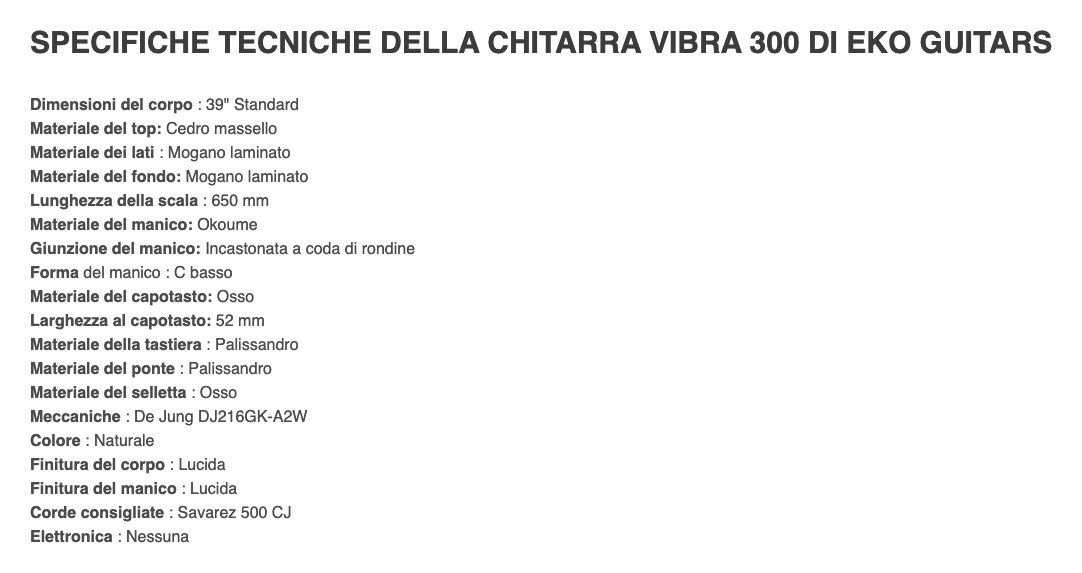 La Vibra 300 è la chitarra classica di Eko Guitars con tavola armonica in cedro massello, fondo e fasce in mogano laminato, manico in okoumè e tastiera in palissandro. Ideale per studenti e insegnanti di chitarra classica che desiderano uno strumento dalle prestazioni elevate.