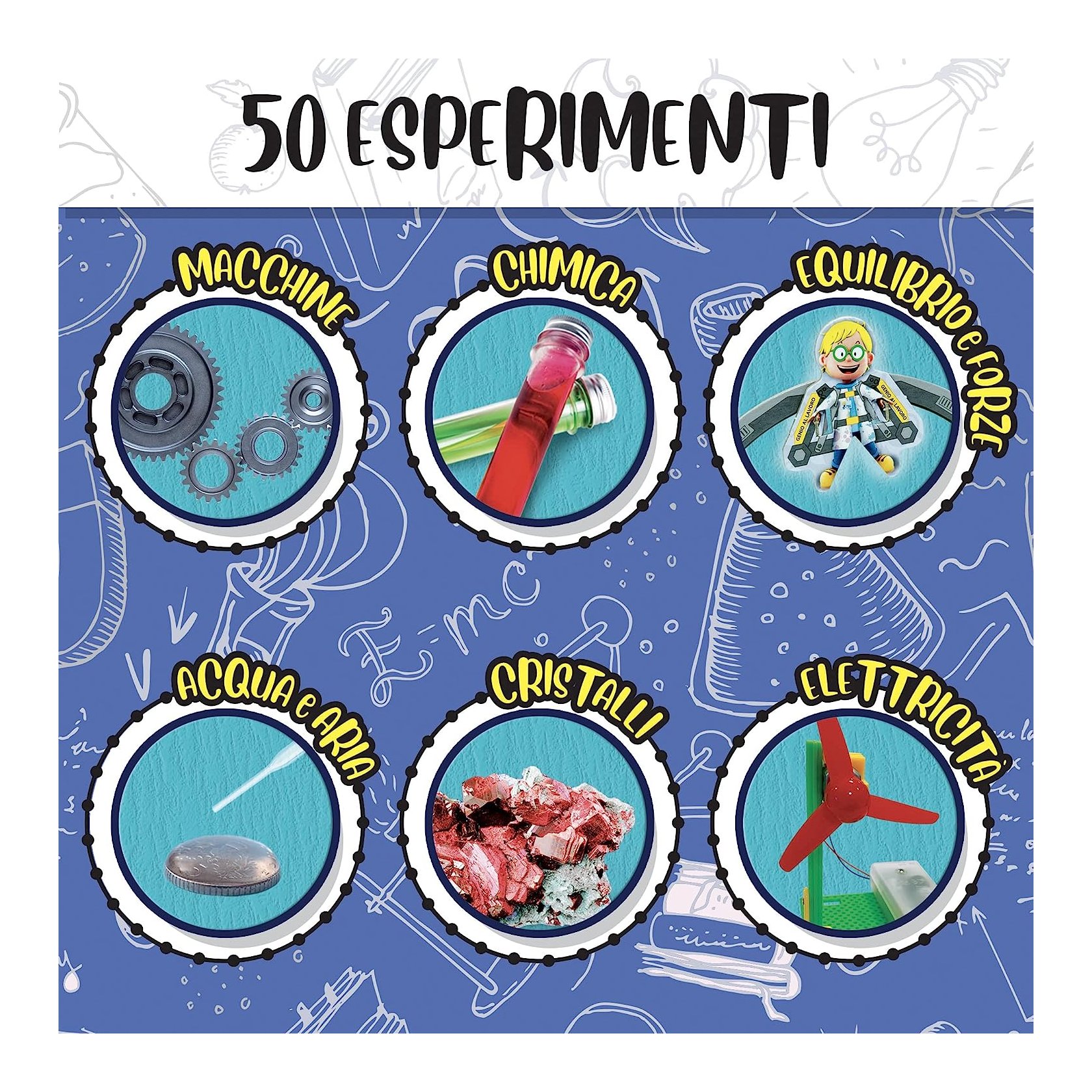 Un laboratorio per realizzare 50 esperienze scientifche: chimica, fisica, cristalli, meccanica e tanti altri ambiti. Tutti esperimenti facili da svolgere e sicuri per approcciarsi al mondo delle scienze in maniera divertente!