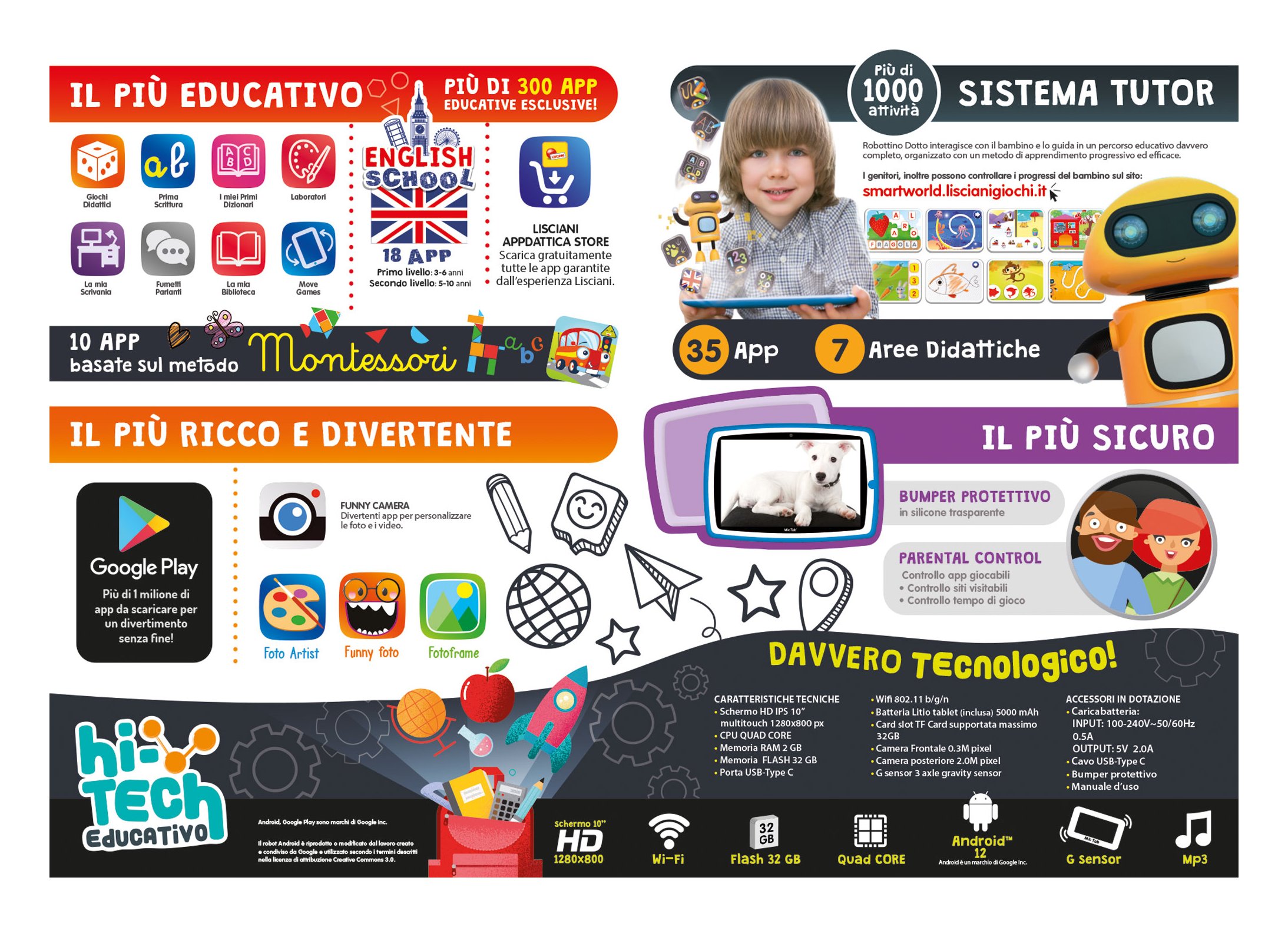 L’unico tablet per bambini con l’escusivo sistema Tutor che prevede un simpatico robottino che con app esclusive, insegna ai bambibi tutte le competenze di base! E in più 10 app basate sul Metodo Montessori!