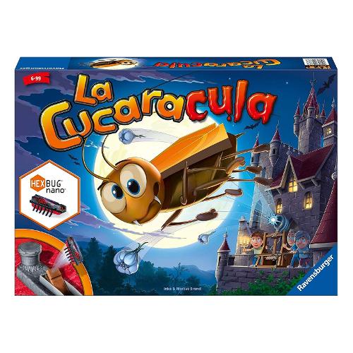 La linea del gioco de “la cucaracha” si amplia con l’introduzione di una divertente versione: la cucaracula, il piccolo e simpatico insetto vampiro. In una notte di luna piena, la cucaracula si aggira per le stanze buie del castello. Scova il vampiro dispettoso con la luce, sorprendilo e scaccialo. Ma attenzione, lo straordinario insetto elettronico hex-bug nano si muove come impazzito. Chi riuscirà a conquistare più gettoni-candela e a catapultare la cucaracula fuori dal castello?