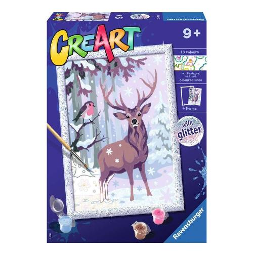 Con creart i bambini dipingono attraverso una tavola prestampata, seguendo i numeri e i bordi colorati riescono a riempire gli spazi con i colori corrispondenti e realizzare la loro opera d’arte. I colori a base d'acqua sono pronti per l'uso e non necessitano alcun solvente. I barattoli di colori sono richiudibili singolarmente per evitare che si secchino. Per facilitare l'attività, viene fornito una tavolozza di cartone dove inserire i barattolini per evitare che si rovescino.