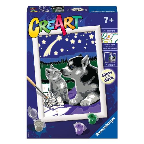 Per i bambini dipingere non è mai stato così facile e soddisfacente. CreArt è un gioco creativo per dipingere attraverso una tavola prestampata, i bambini possono seguire i numeri e i bordi colorati per riempire gli spazi con i colori corrispondenti e realizzare la loro opera d’arte. I colori a base d'acqua sono pronti per l'uso e non necessitano alcun solvente. I barattoli di colori sono richiudibili singolarmente per evitare che si secchino. Per facilitare l'attività, viene fornito una tavolozza di cartone dove inserire i barattolini per evitare che si rovescino. Ogni confezione contiene tutto il necessario per dipingere.