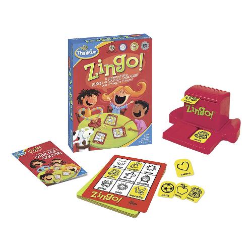 ZINGO! è un gioco di abbinamenti interattivo e coinvolgente. Regala un pizzico di emozione al classico gioco della tombola e aiuta il bambino ad imparare divertendosi. Fai scorrere lo ZINGO! Zinger e fai apparire, come per magia, nuove tessere! Il giocatore che per primo riesce a coprire tutti gli spazi sulla propria scheda ZINGO!, vince! Le tessere e le schede riportano sia le immagini sia i nomi corrispondenti e ciò rende questo gioco uno strumento utile per i bambini in età prescolare.