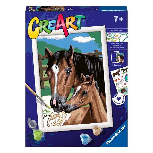 Per i bambini dipingere non è mai stato così facile e soddisfacente. Creart è un gioco creativo per dipingere attraverso una tavola prestampata, i bambini possono seguire i numeri e i bordi colorati per riempire gli spazi con i colori corrispondenti e realizzare la loro opera d’arte. I colori a base d'acqua sono pronti per l'uso e non necessitano alcun solvente. I barattoli di colori sono richiudibili singolarmente per evitare che si secchino. Per facilitare l'attività, viene fornito una tavolozza di cartone dove inserire i barattolini per evitare che si rovescino. Ogni confezione contiene tutto il necessario per dipingere un quadro e una cornice per poter appendere il proprio lavoro una volta terminato il lavoro.