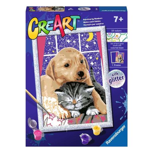 Per i bambini dipingere non è mai stato così facile e soddisfacente. Creart è un gioco creativo per dipingere attraverso una tavola prestampata, i bambini possono seguire i numeri e i bordi colorati per riempire gli spazi con i colori corrispondenti e realizzare la loro opera d’arte. I colori a base d'acqua sono pronti per l'uso e non necessitano alcun solvente. I barattoli di colori sono richiudibili singolarmente per evitare che si secchino. Ogni confezione contiene tutto il necessario per dipingere un quadro e una cornice per poter appendere il proprio lavoro una volta terminato il lavoro.