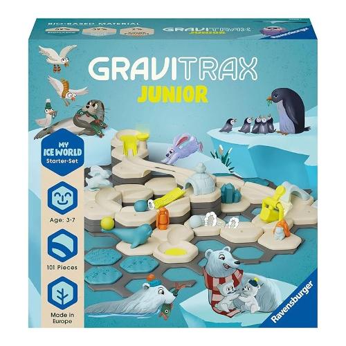 Gravitrax junior offre ai bambini a partire dai 3 anni una facile introduzione ai mondi di gravitrax. Gravitrax junior è un sistema interattivo di corsa in biglia. I bambini e le bambine lo usano per creare i propri mondi di corsa in marmo che possono essere decorati in modo flessibile, creando mondi a tema molto individuali. Costruire e giocare divertendosi vanno di pari passo. Gravitrax junior può essere ampliato come richiesto da estensioni con componenti o elementi speciali. Il set iniziale l jungle contiene tutto il necessario per costruire singole corsie in un mondo di ghiaccio.