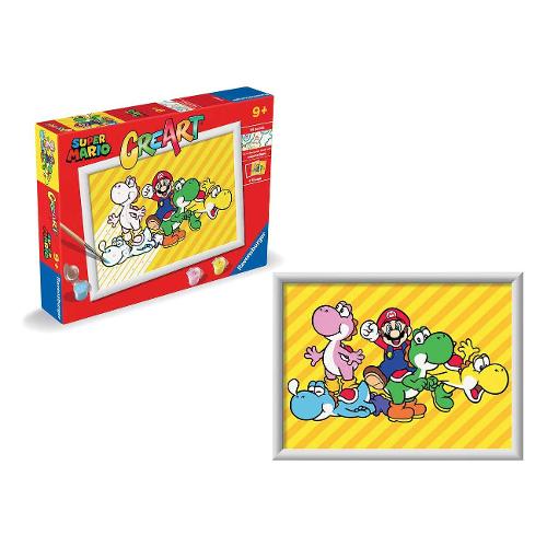 Con creart i bambini dipingono attraverso una tavola prestampata, seguendo i numeri e i bordi colorati riescono a riempire gli spazi con i colori corrispondenti e realizzare la loro opera d’arte. I colori a base d'acqua sono pronti per l'uso e non necessitano alcun solvente. I barattoli di colori sono richiudibili singolarmente per evitare che si secchino. Per facilitare l'attività, viene fornito una tavolozza di cartone dove inserire i barattolini per evitare che si rovescino.