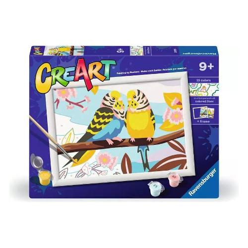 Con creart i bambini dipingono attraverso una tavola prestampata, seguendo i numeri e i bordi colorati riescono a riempire gli spazi con i colori corrispondenti e realizzare la loro opera d’arte. I colori a base d'acqua sono pronti per l'uso e non necessitano alcun solvente. I barattoli di colori sono richiudibili singolarmente per evitare che si secchino. Per facilitare l'attività, viene fornito una tavolozza di cartone dove inserire i barattolini per evitare che si rovescino.