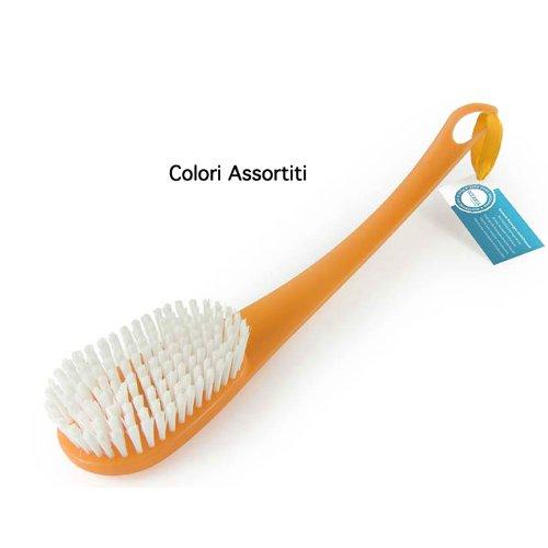 Spazzola per l'igiene quotidiana e per un rilassante massaggio corpo. Con manico lungo e foro all'estremità per poterla comodamente agganciare in doccia