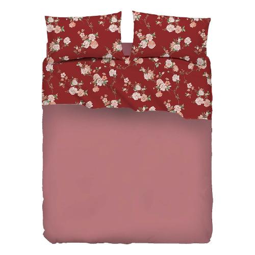Zucchi Completo letto due piazze percalle di cotone PEONY Bordeaux 61 9127033