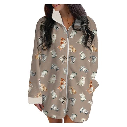 Soffice vestaglia flannel stampata con zip e tasche. Polsi e collo in sherpa. Confezionata in elegante scatola regalo