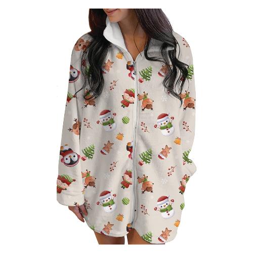 Soffice vestaglia flannel stampata con zip e tasche. Polsi e collo in flannel. Confezionata in elegante scatola regalo