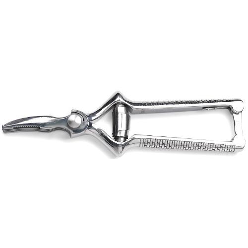 Forbice masticatrice a tripla lama curva dentellata per sminuzzare, tagliare, tritare carne e verdura cotta, pasta etc. dotata di gancio di sicurezza per chiudere le forbici.