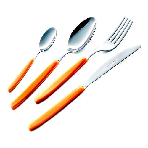 Cromo è una posata in acciaio sul cui manico vengono applicate le 2 guancette colorate che fungono da impugnatura. È una posata caratterizzata da linee armoniche e moderne capace di regalare piacevoli momenti di benessere anche a tavola grazie al colore. È indicata per una tavola giovane ed un utilizzo quotidiano. Set 24 pezzi comprende, 6 cucchiai, 6 forchette, 6 coltelli tavola e 6 cucchiaini caffè