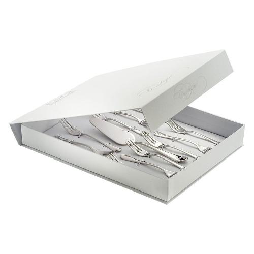 Astuccio con apertura a libro completo di 12 forchette dessert e pala torta.