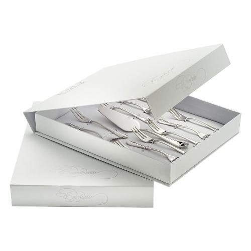 Astuccio con apertura a libro completo di 12 forchette dessert e pala torta.