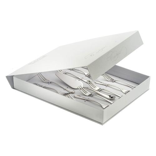 Astuccio con apertura a libro completo di 12 forchette dessert e pala torta.