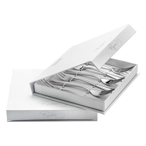 Infinity è una posata dall'eleganza quotidiana. Il design minimale delle larghe manicature come nastri sinuosi, la forma sagomata e allungata della coppa dei cucchiai e la sobrietà della silhouette delle forchette evocano un'idea di purezza e di infinito.