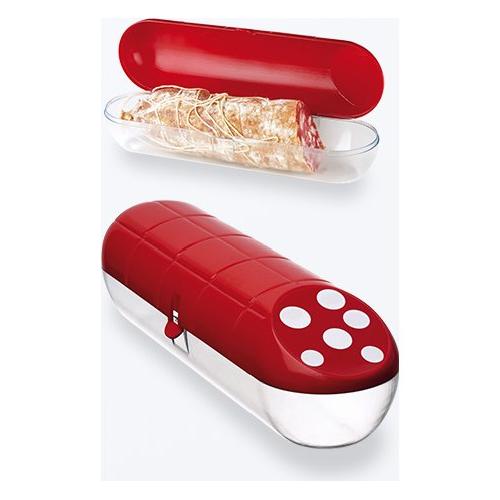 Contenitore studiato per conservare il salame in frigorifero preservandone la fragranza. La chiusura di sicurezza ne permette un più facile trasporto