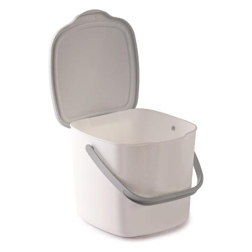 Contenitore con coperchio per gettare i rifiuti che si producono mentre si cucina. Perfetto per essere tenuto sul piano della cucina, o appeso al cassetto o al mobile della cucina, grazie al pratico gancio posteriore.