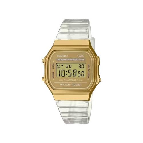 Tuffati nella nostalgia degli anni 80: un orologio digitale alla moda con cassa metallica e cinturino traslucido per un elegante accessorio indispensabile.