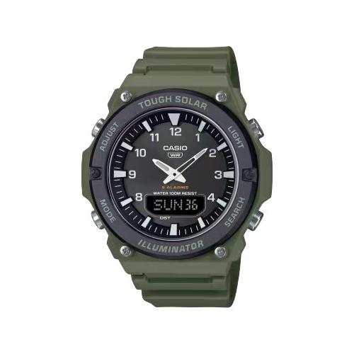 Un orologio a energia solare, resistente all'acqua per 100 metri, ispirato al design dei pannelli degli strumenti degli aerei. Cinturino regolabile da 145 mm a 215 mm