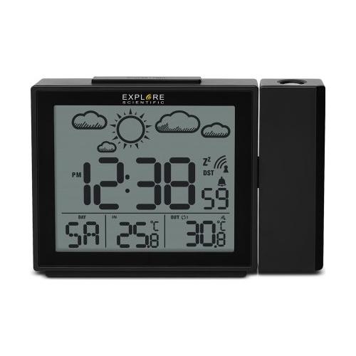 Mette insieme la comodità della proiezione dell’ora, a soffitto o a parete, con l’utilità delle previsioni del tempo che, grazie a grandi e chiare icone, sono sempre a vista. Il sensore esterno della temperatura è dotato di display per una consultazione rapida del valore termico anche quando si è distanti dall’unità principale. Le altre informazioni visualizzate sul chiaro display dell’Explore Scientific RPW3009 sono l’ora, la data e il giorno della settimana (tutti radio-controllati) nonché la temperatura interna. Il design è classico, basato sul nero e sulla semplicità delle forme, perfetto per arredamenti e stili di ogni genere. Una porta USB permette di ricaricare il telefono.