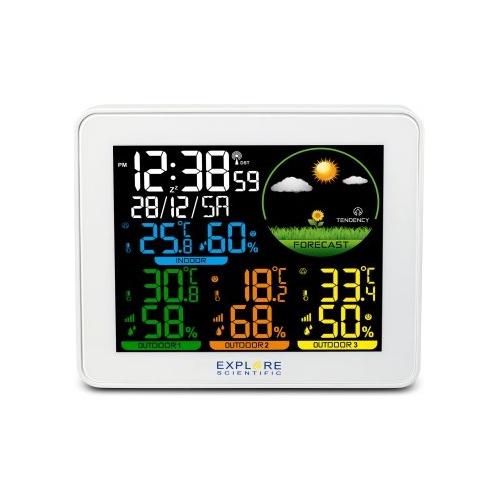 Con un display a colori in grado di riprodurre icone e numeri con una definizione superiore, la weather station WSH4005S di Explore Scientific consente un monitoraggio ambientale completo. Grazie infatti al sensore interno di temperatura e umidità e ai tre sensori esterni, basta un solo sguardo per conoscere il trend termico e igrometrico degli ambienti sotto osservazione. La visualizzazione con colori diversi (bianco, azzurro, verde, arancio e giallo) ne rende più piacevole l’uso. Supporta fino a 3 sensori tutti inclusi nella confezione.