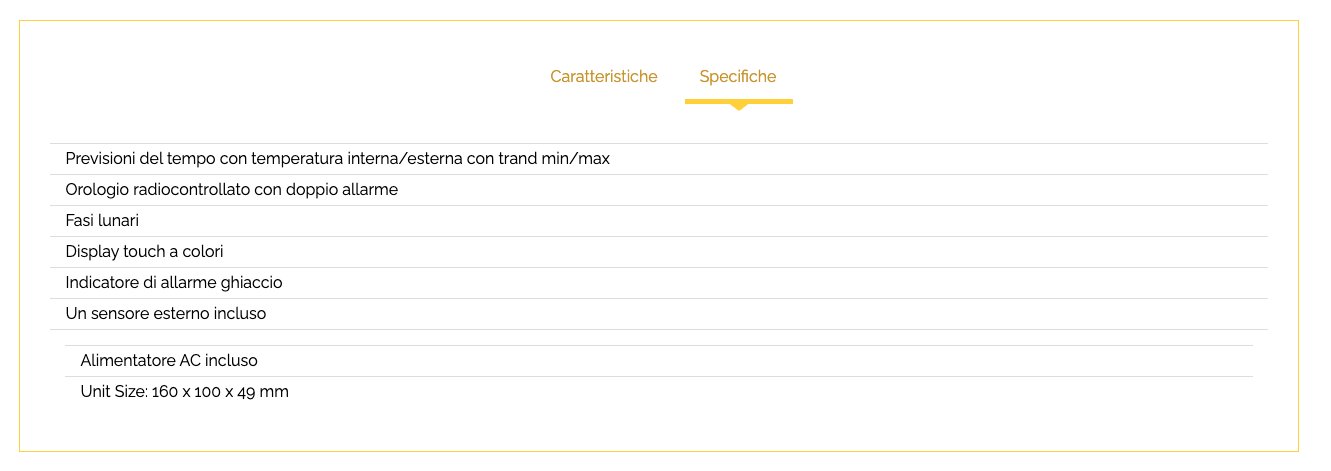 Dal design elegante e moderno e un display touch a colori, la stazione meteo WSC4009 visualizza tutte le informazioni meteo di cui si ha bisogno per pianificare nel modo migliore le proprie giornate. Mostra le previsioni del tempo a icone, l'ora radiocontrollata con doppio allarme, le fasi lunari, la temperatura interna/esterna con trand min/max e avvisa sull'eventuale formazione di ghiaccio. Un sensore esterno incluso.