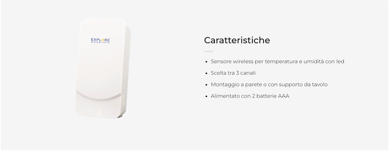 Il sensore esterno misura la temperatura e l’umidità relativa al luogo (interno o esterno) in cui viene posizionato, tra -20 °C e 60 °C (per la temperatura) e tra il 25% e il 95% (per l’umidità). Può trovarsi a un massimo di 30 metri dall’unità principale ed è alimentato da due batterie ministilo AAA (in dotazione). Compatibile con stazione meteo WSH4002. Supporta montaggio a parete o con supporto da tavolo