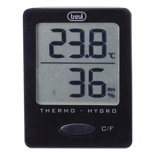 Trevi TE 3004 è un termometro digitale, ideale per rimanere sempre informati sulla temperatura e sulla quantità di umidità presente nell’aria. Il piccolo display del termometro digitale di Trevi è suddiviso in due parti: nella fascia superiore troverai la temperatura dell’ambiente espressa, a seconda delle preferenze, in gradi Celsius o Fahrenheit mentre, in quella inferiore, l’umidità presente espressa in percentuale. Al di sotto troverai un unico tasto, la cui pressione ti consentirà di passare da una scala di temperatura all’altra e viceversa. TE 3004, tramite una calamita posta sul retro, può essere comodamente appeso, oppure appoggiato su un mobile grazie al supporto reclinabile. Per funzionare, richiede una batteria CR 2032 da inserire nell’apposito vano.