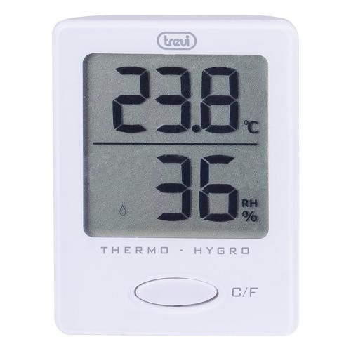 Trevi TE 3004 è un termometro digitale, ideale per rimanere sempre informati sulla temperatura e sulla quantità di umidità presente nell’aria. Il piccolo display del termometro digitale di Trevi è suddiviso in due parti: nella fascia superiore troverai la temperatura dell’ambiente espressa, a seconda delle preferenze, in gradi Celsius o Fahrenheit mentre, in quella inferiore, l’umidità presente espressa in percentuale. Al di sotto troverai un unico tasto, la cui pressione ti consentirà di passare da una scala di temperatura all’altra e viceversa. TE 3004, tramite una calamita posta sul retro, può essere comodamente appeso, oppure appoggiato su un mobile grazie al supporto reclinabile. Per funzionare, richiede una batteria CR 2032 da inserire nell’apposito vano.