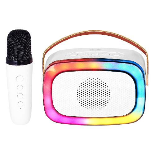 Grazie alla funzione karaoke e al mini microfono wireless compreso nella dotazione, potrai metterti alla prova come cantante e sperimentare i numerosi effetti voce a tua disposizione e, per rendere l’atmosfera ancora più coinvolgente, la cornice illuminata Disco Light multicolor ti regalerà l’impressione di essere su un palco con i suoi giochi di luce.