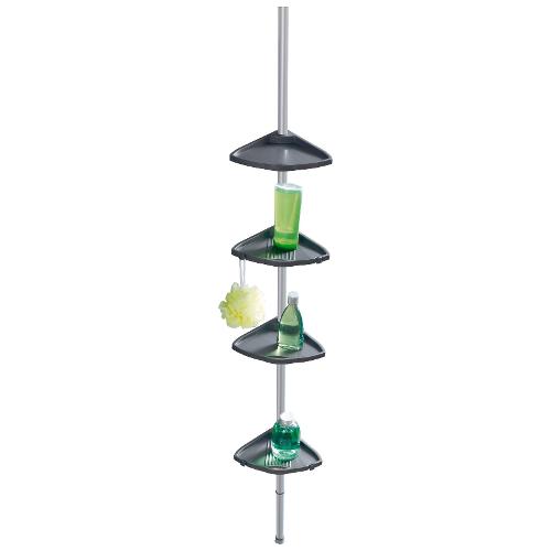 Robusto telaio in alluminio diametro 25 mm. L‘angoliera per doccia è utilizzabile universalmente sia nella cabina doccia che in qualunque angolo del bagno. Offre l‘ideale spazio per appoggiare shampoo, sapone, spugna, ecc. Con gancio per appenderia.