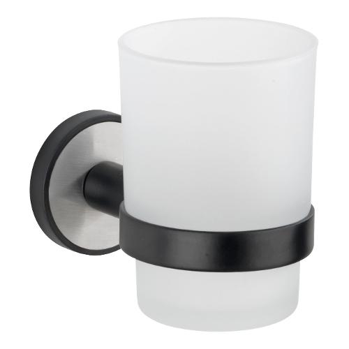 Gli accessori della linea bagno UV-Loc® Udine trasformano la stanza da bagno in un vero luogo del benessere. Il design urbano e alla moda dell’accessorio utile per bagno è una combinazione di acciaio spazzolato e laccato nero opaco. Il pratico supporto con bicchiere, in cui è possibile riporre utensili per l’igiene orale, è realizzato in acciaio inossidabile di qualità e conferisce al bagno un’eleganza versatile. Il bicchiere amovibile è realizzato in vetro satinato. L’accessorio per il bagno è indicato anche per la conservazione di accessori da trucco come pennelli o altri utensili lunghi.