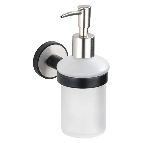 Gli accessori della linea bagno UV-Loc® Udine trasformano la stanza da bagno in un vero luogo del benessere. Il design urbano e alla moda dell’accessorio utile per bagno è una combinazione di acciaio spazzolato e laccato nero opaco. Il pratico supporto a parete con dosatore di sapone è realizzato in acciaio inossidabile di qualità e conferisce al bagno un’eleganza versatile. Il dispenser amovibile è realizzato in vetro satinato e può essere riempito con 200 ml di sapone liquido.