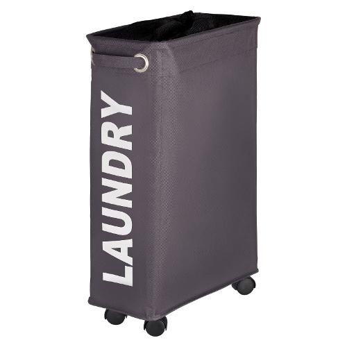 Il sottile portabiancheria salvaspazio è realizzato in poliestere di alta qualità ed è trasportabile senza problemi grazie alle sue quattro ruote. Grazie al paravista può tenere efficacemente nascosta la biancheria sporca. In questo modo nicchie e angoli diventano un pratico spazio utilizzabile.