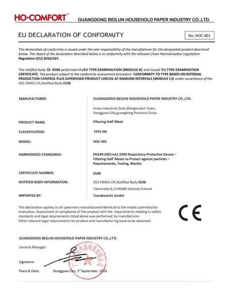 T Tex Mascherina protezione HO Comfort FFP2 1 pz (taglia unica ) Bianco HOC001WH