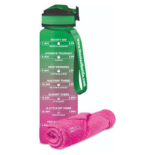 Borraccia tritan (1Lt) motivazionale con asciugamano THE STEEL BOTTLE Pink & Green MWB1LASG#1PG