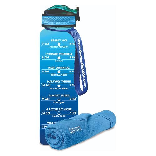 Borraccia tritan (1Lt) motivazionale con asciugamano THE STEEL BOTTLE Blue & Aquamarine MWB1LASG#3BA