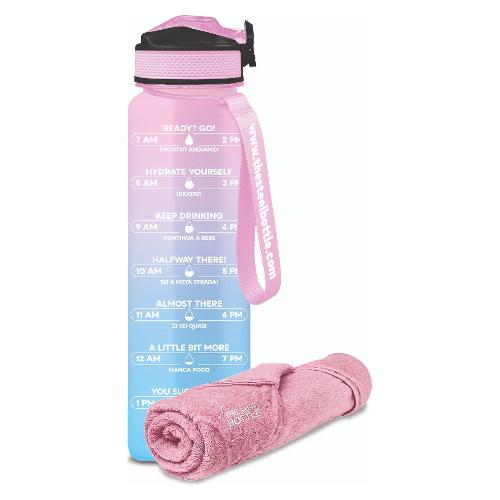 Borraccia tritan (1Lt) motivazionale con asciugamano THE STEEL BOTTLE Ice blue & Pink MWB1LASG#6IP