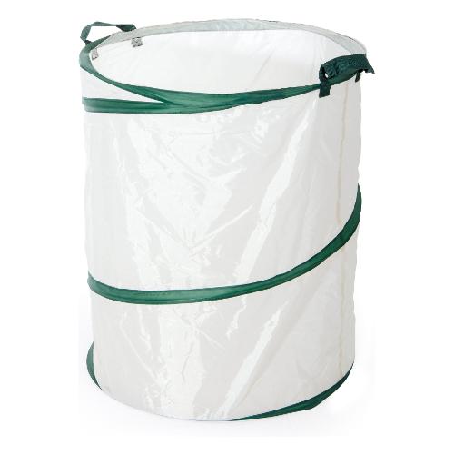 Contenitore pop-up utile per la raccolta di foglie o immondizia leggera in giardino o in casa. Struttura “a molla”, rivestimento in pvc. Portata massima 20 kg. Lavabile con acqua. Una volta richiuso occupa pochissimo spazio.